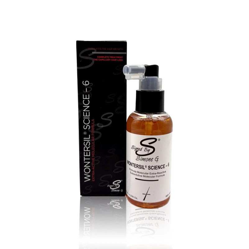 Potenciador del crecimiento del cabello, tratamiento total anticaída capilar y regenerador que actúa sobre una predisposición mínima de vida capilar. Su penetración es más intensa en virtud de revitalizadores añadidos que actúan sobre toda la zona de la raíz, incluido el sistema erector del cabello. Wontersil Science-6, está elaborado a base de extractos placentarios frescos, vitaminas de los grupos B, E y H, enzimas y aminoácidos. Indicado para casos de caída del cabello muy intensa.